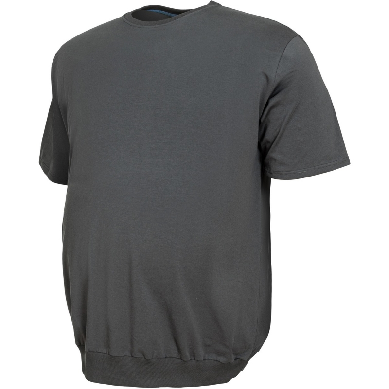 Описание Мужская футболка большого размера Big Team. Выполнена из 95% хлопка и 5% эластана, цвет тёмно серый. Футболка хорошо тянется. Однотонная.Нмз футболки на манжете.