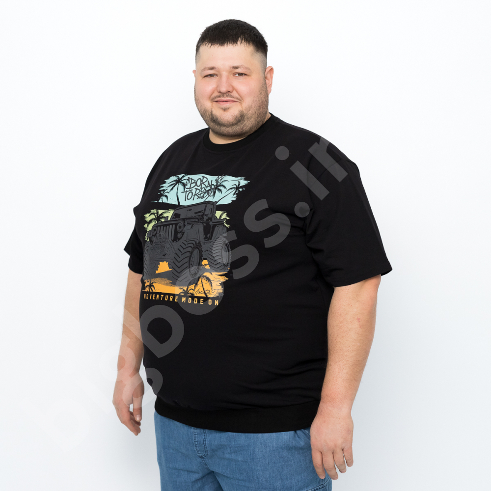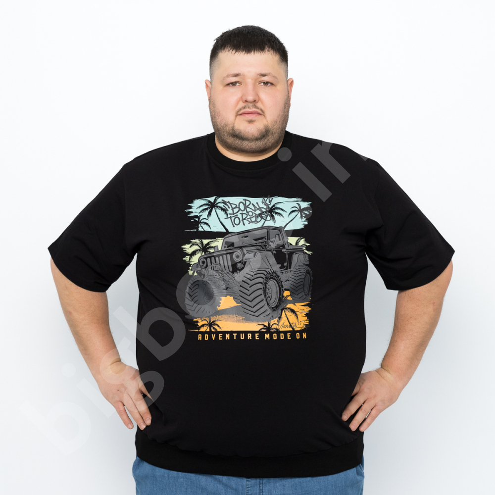 Описание Мужская футболка большого размера Big Team. Выполнена из 95% хлопка и 5% эластана, цвет чёрный. Футболка хорошо тянется.Нмз футболки на манжете.