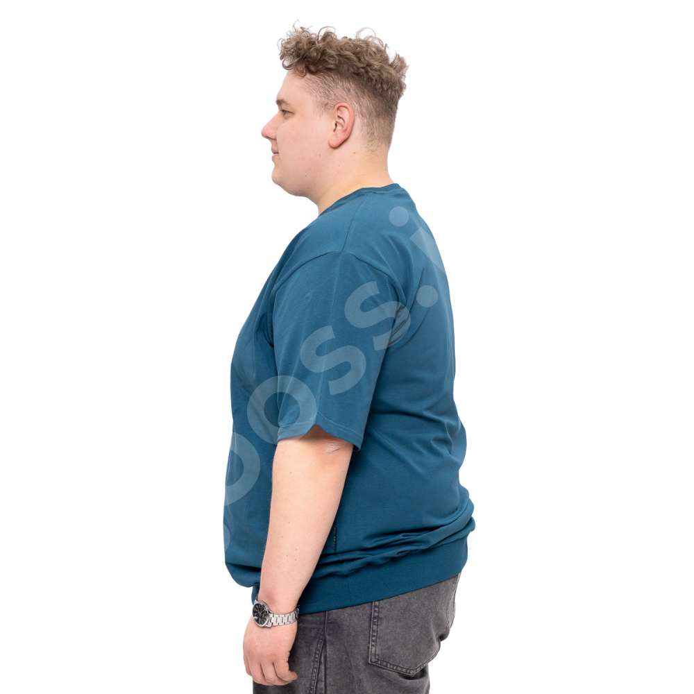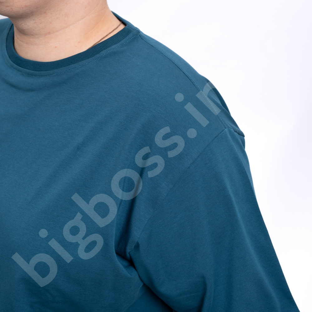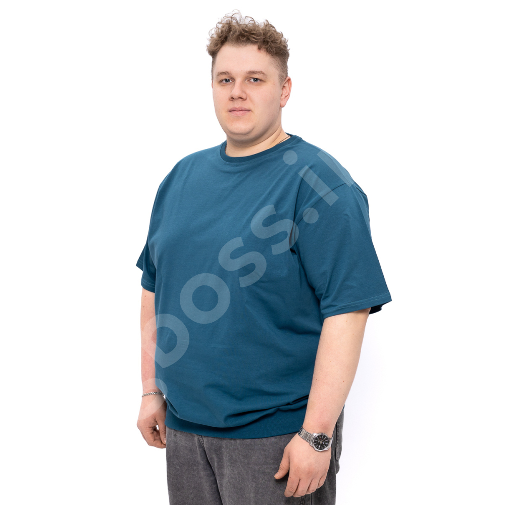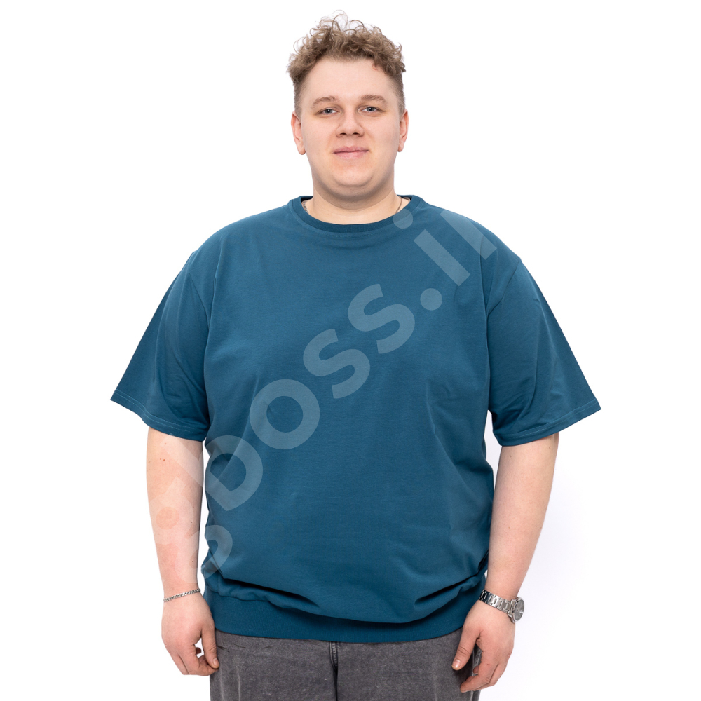 Мужская футболка большого размера Big Team. Выполнена из 95% хлопка и 5% эластана, цвет морской волны. Футболка хорошо тянется. Однотонная.Нмз футболки на манжете.