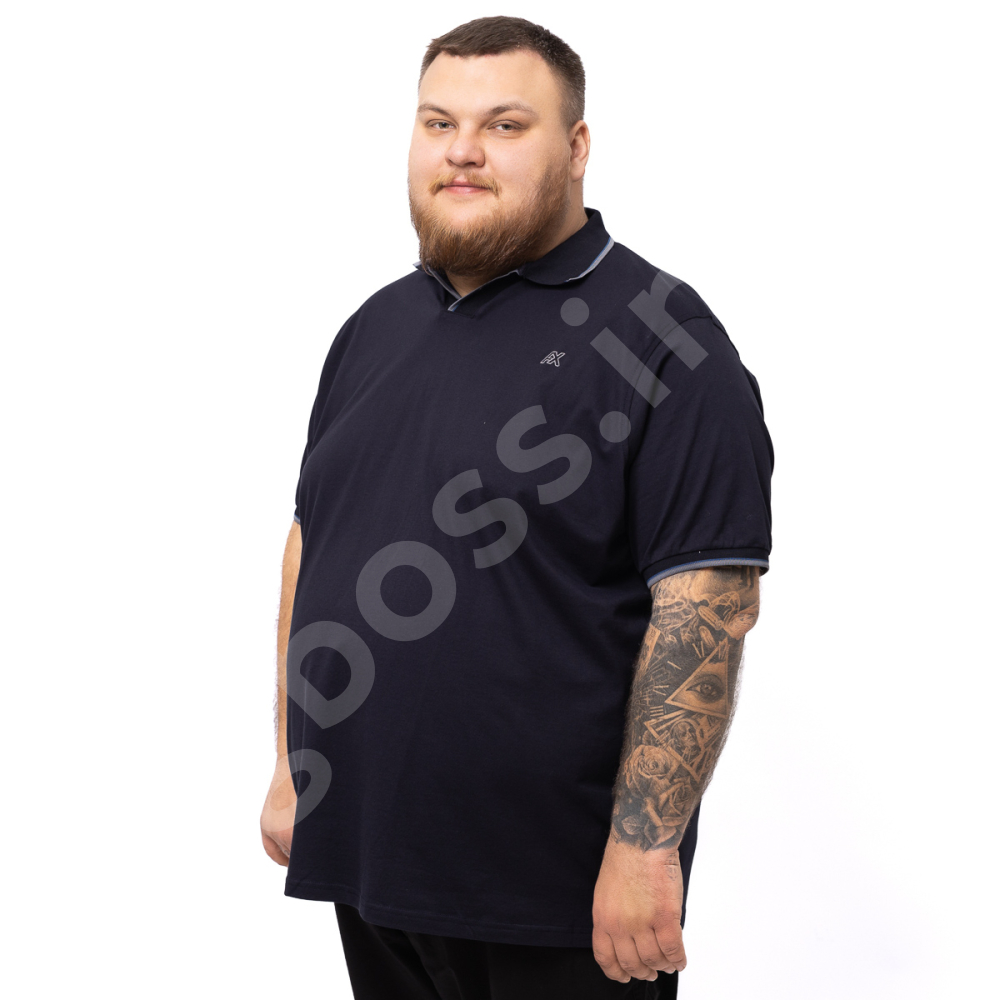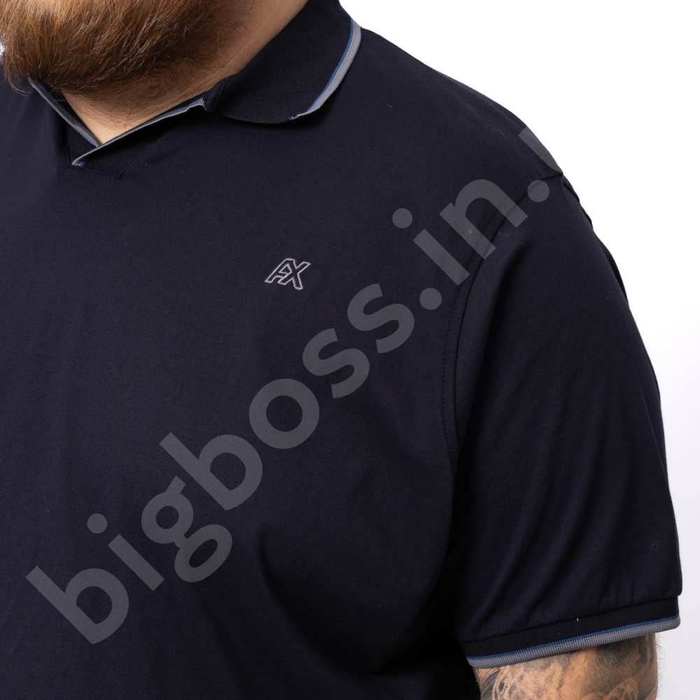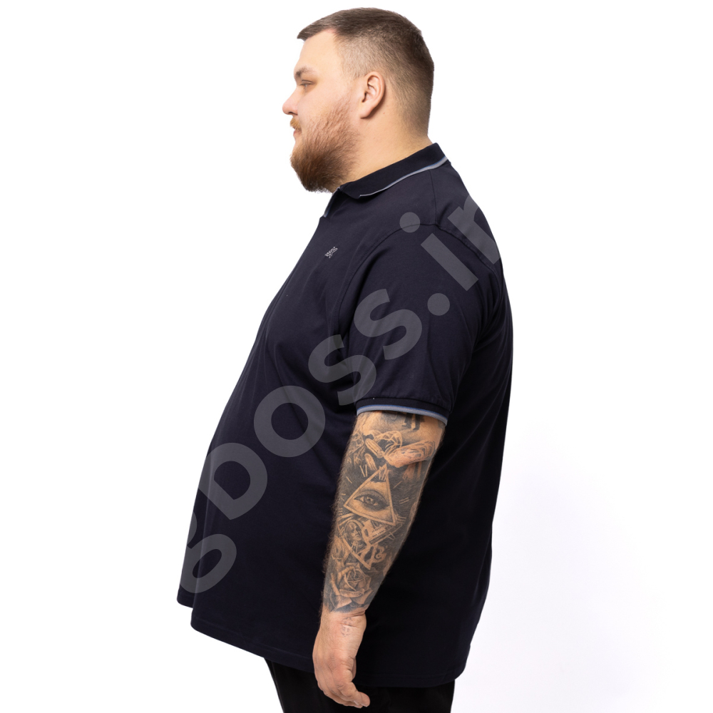Поло большого размера Annex. Выполнено из 95% хлопка и 5%эластана (ткань лакоста), цвет тёмно синий. На груди нашивка. Низ прямого кроя, рукава на манжете.