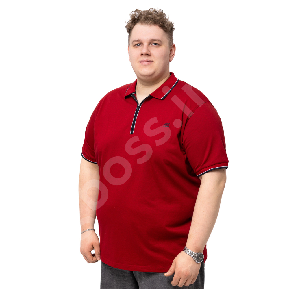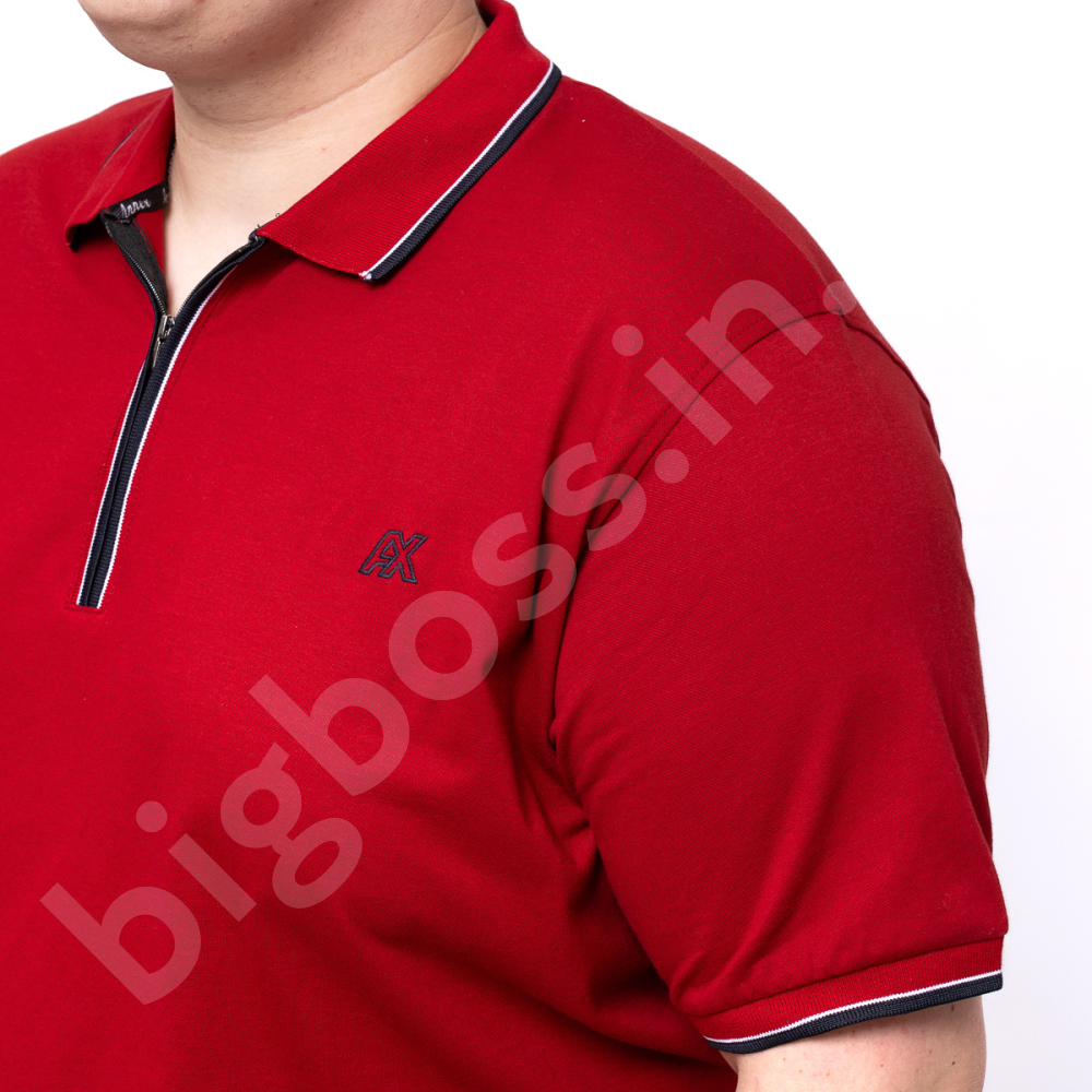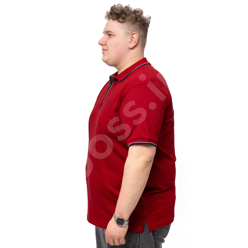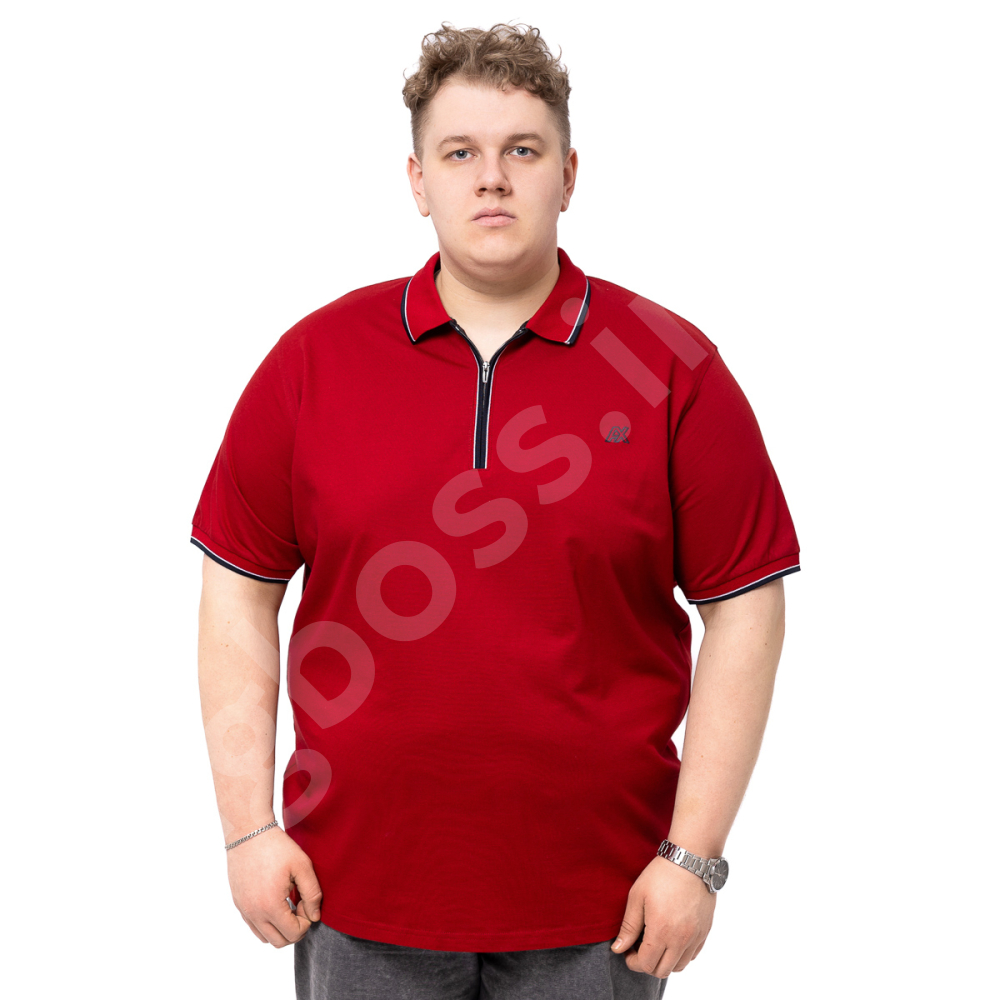 Поло большого размера Annex. Выполнено из тонкого трикотажа, цвет бордо. На груди нашивка. Низ прямого кроя, рукава на манжете. Планка ворота на молнии.