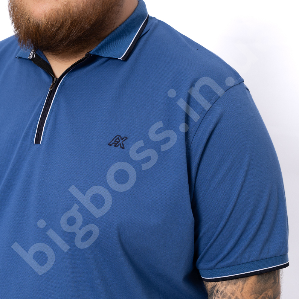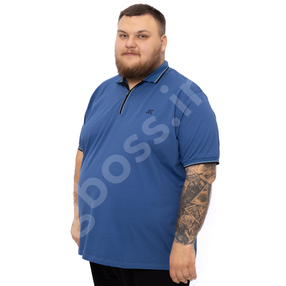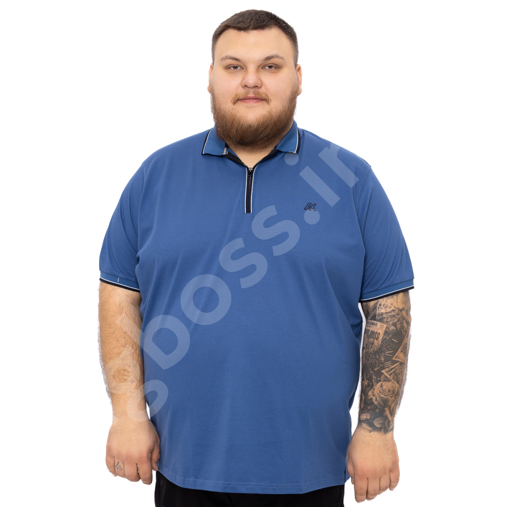 Поло большого размера Annex. Выполнено из тонкого трикотажа, цвет синий. На груди нашивка. Низ прямого кроя, рукава на манжете. Планка ворота на молнии.