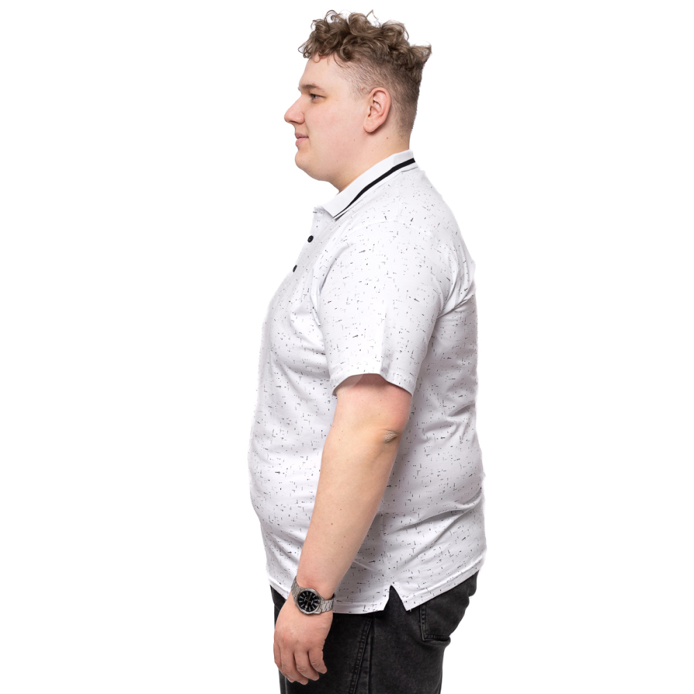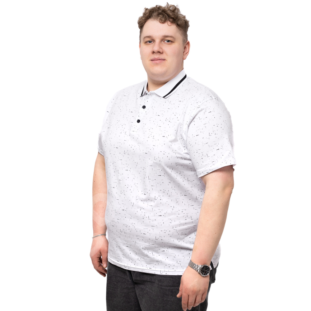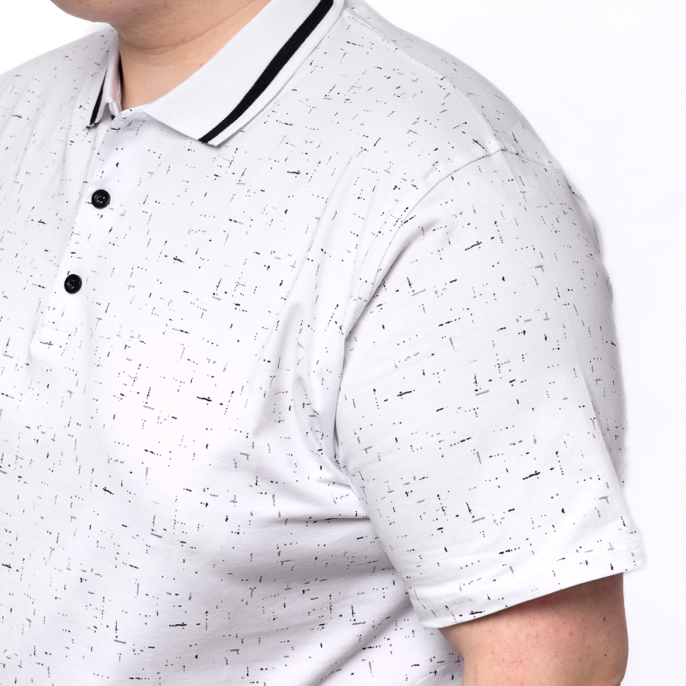 Поло большого размера Annex. Выполнено из 95% хлопка и 5%эластана, цвет белый в принт. Низ прямого кроя, рукава на манжете.