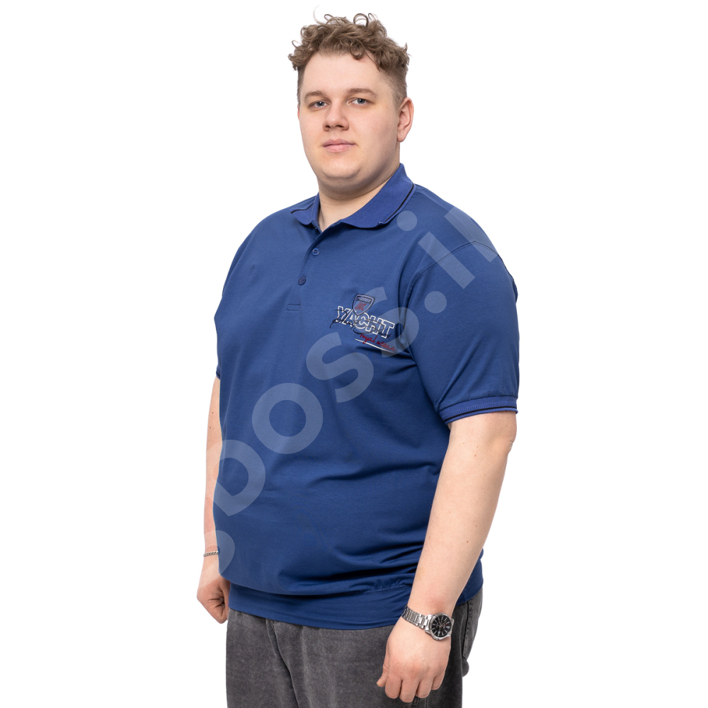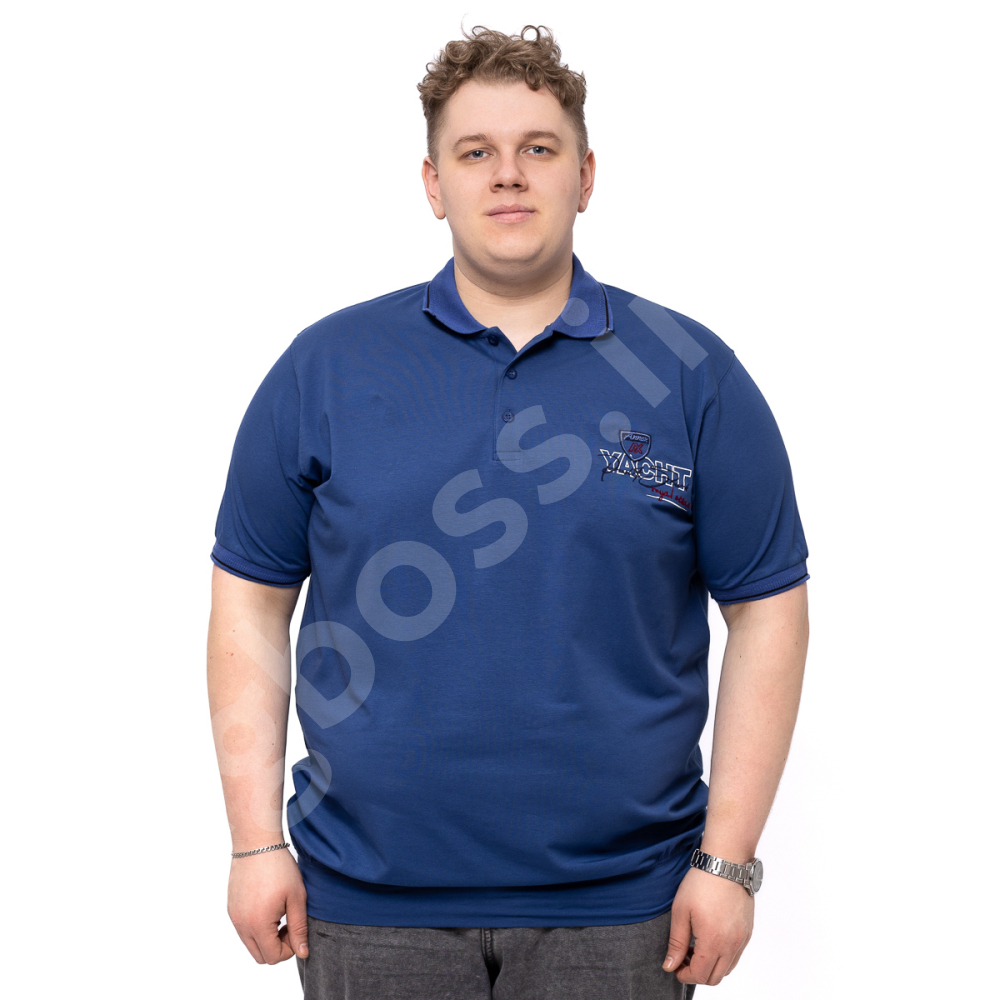 Поло большого размера Annex. Выполнено из тонкого трикотажа, цвет синий. На груди нашивка. Низ изделия и рукава на манжете.