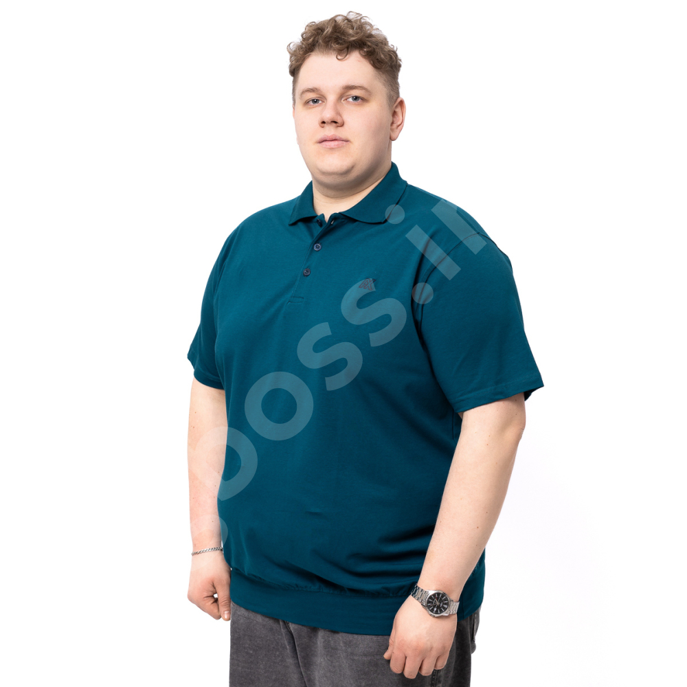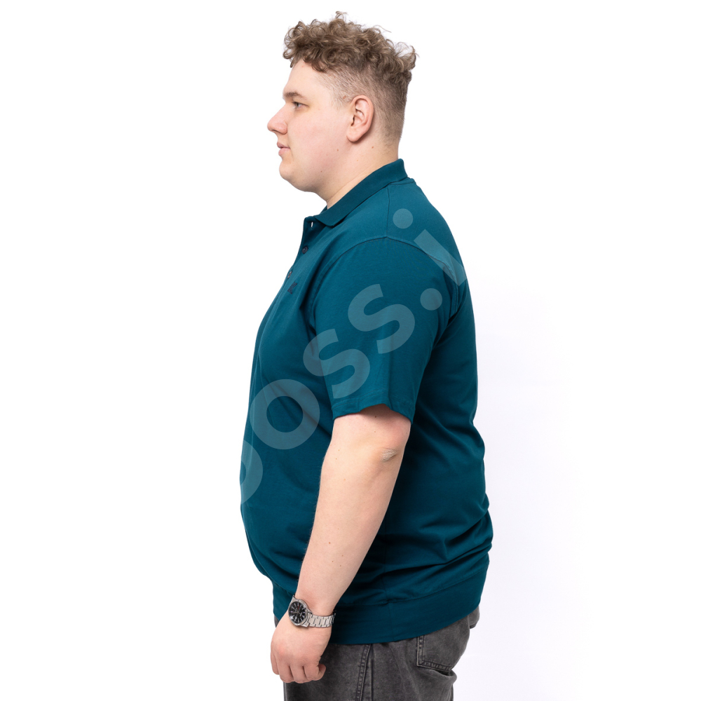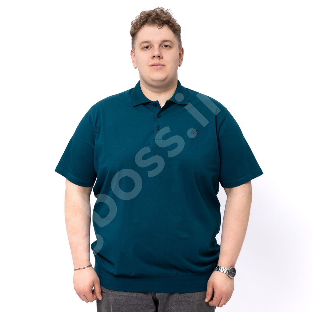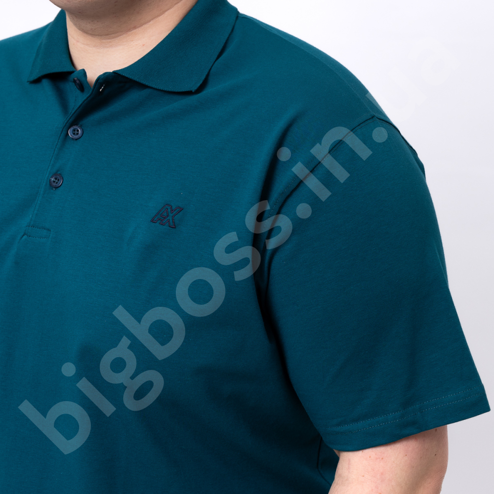 Поло большого размера Annex. Выполнено из тонкого трикотажа, цвет морской волны. На груди нашивка. Низ изделия и рукава на манжете.