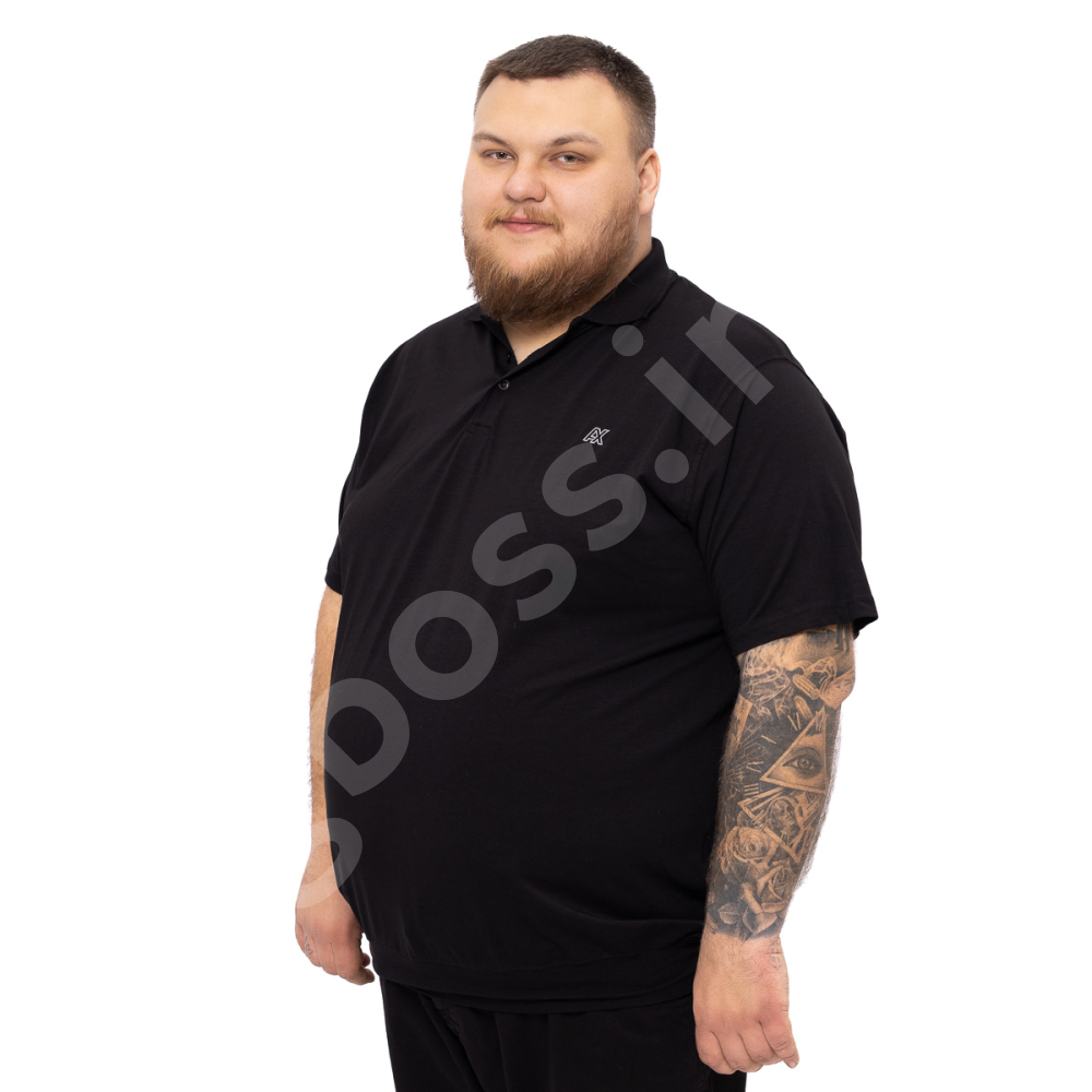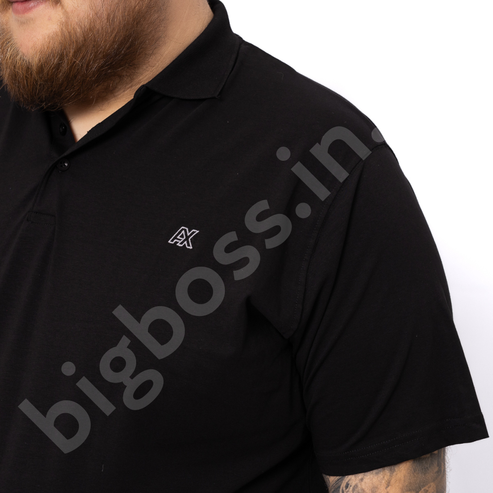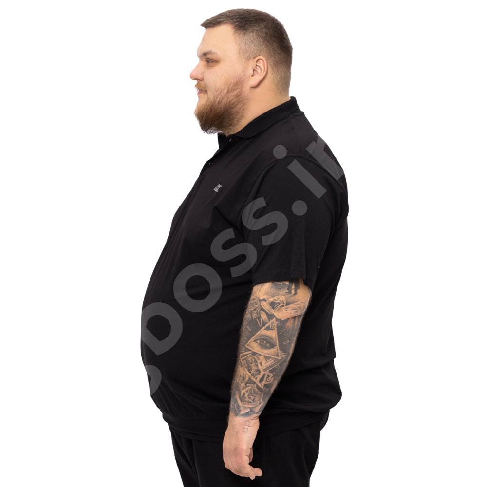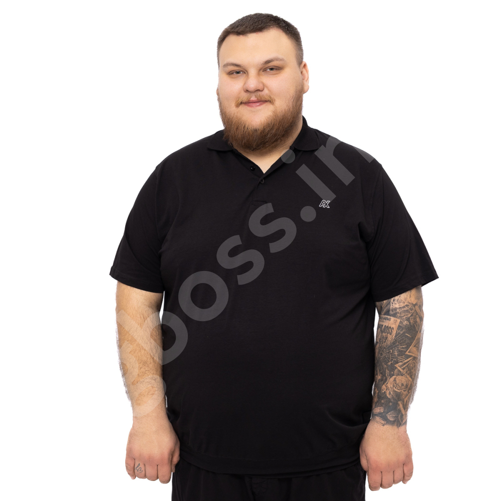 Поло большого размера Annex. Выполнено из тонкого трикотажа, цвет чёрный. На груди нашивка. Низ изделия и рукава на манжете.