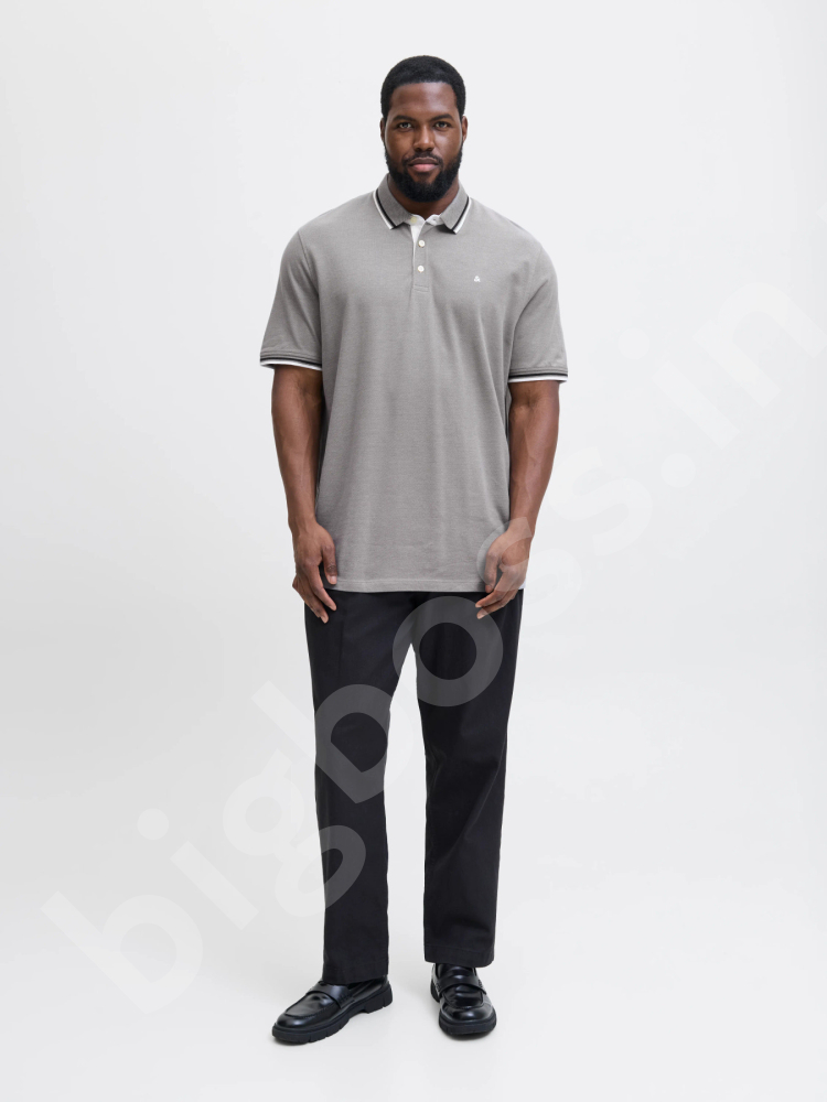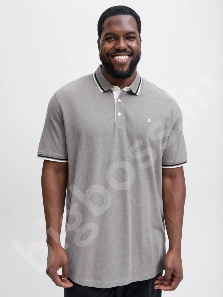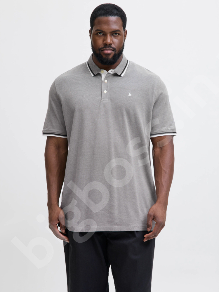 Футболка поло большого размера Jack & Jones. Ткань тонкая, планка ворота на 3-х пуговицах. Цвет беж. Код модели 12143859.