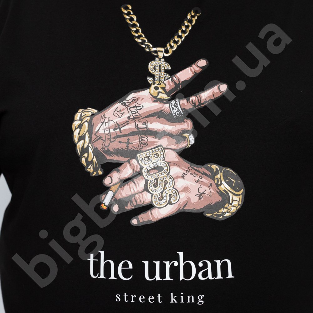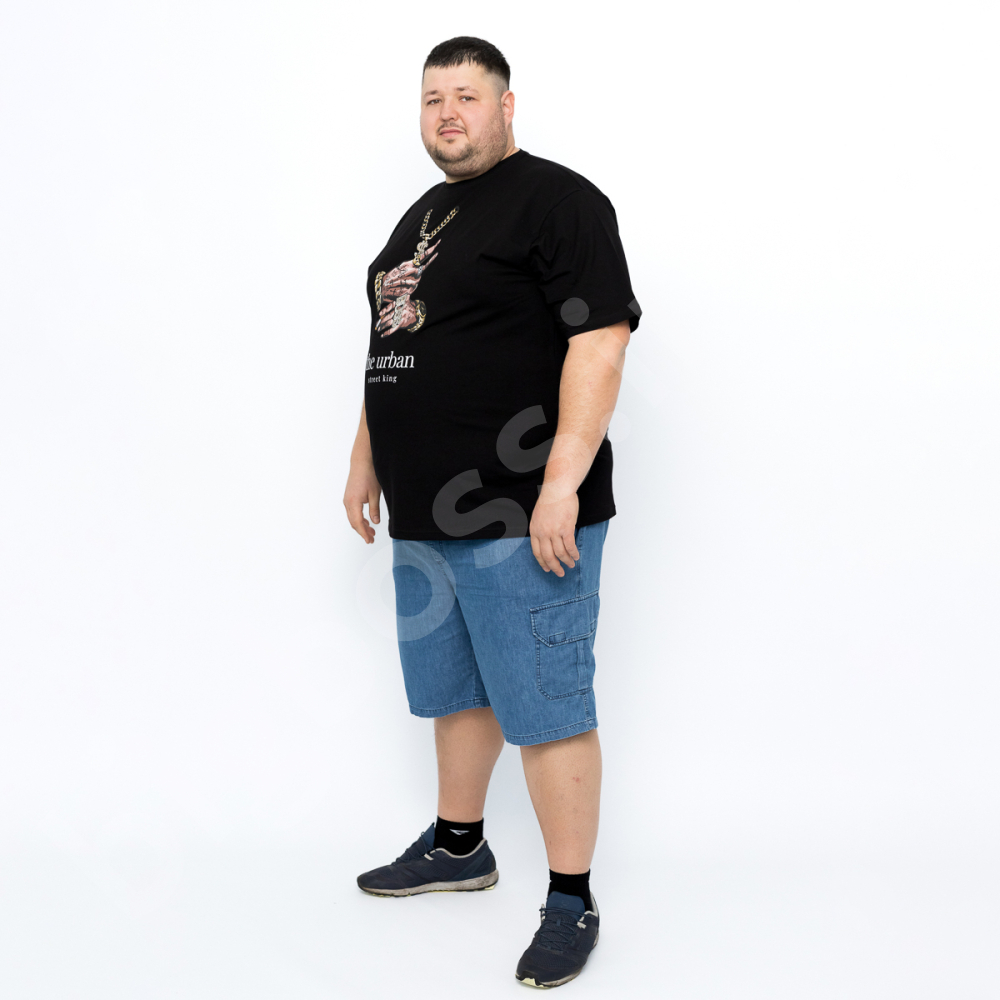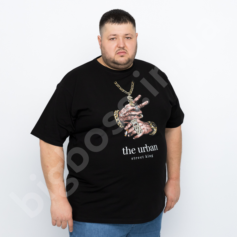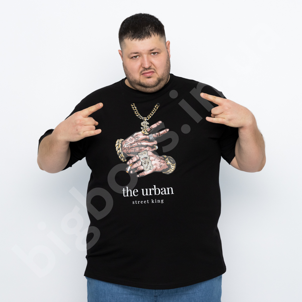 Описание Мужская футболка большого размера Big Team. Выполнена из 95% хлопкаи 5% эластана, чёрного цвета. Футболка хорошо тянется. На груди принт.