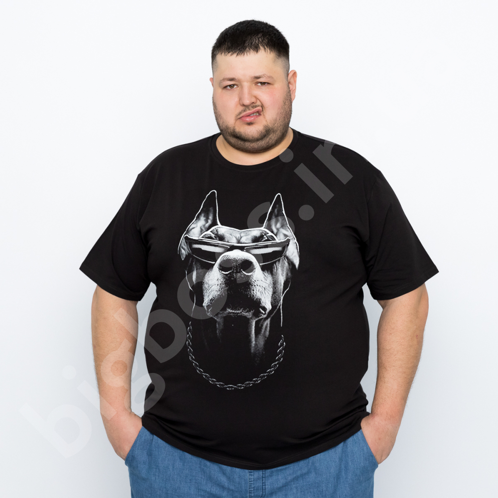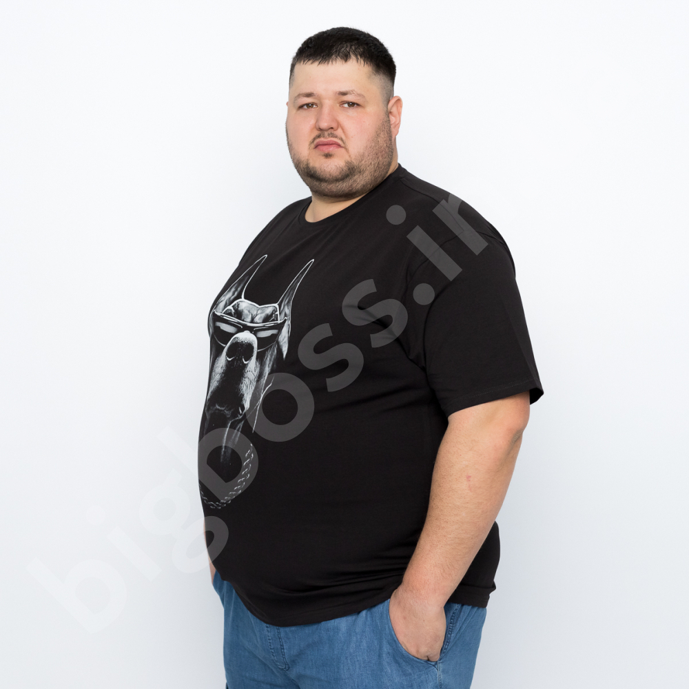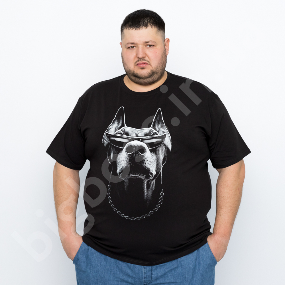 Описание Мужская футболка большого размера Big Team. Выполнена из 95% хлопкаи 5% эластана, чёрного цвета. Футболка хорошо тянется. На груди принт.