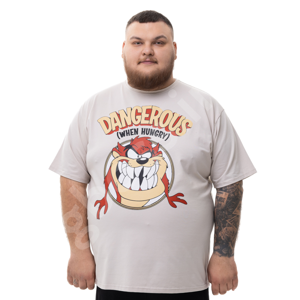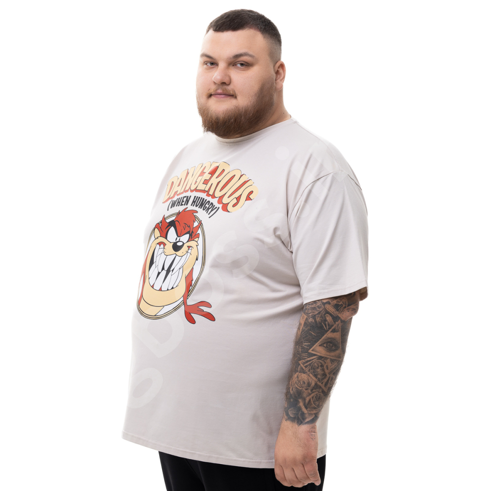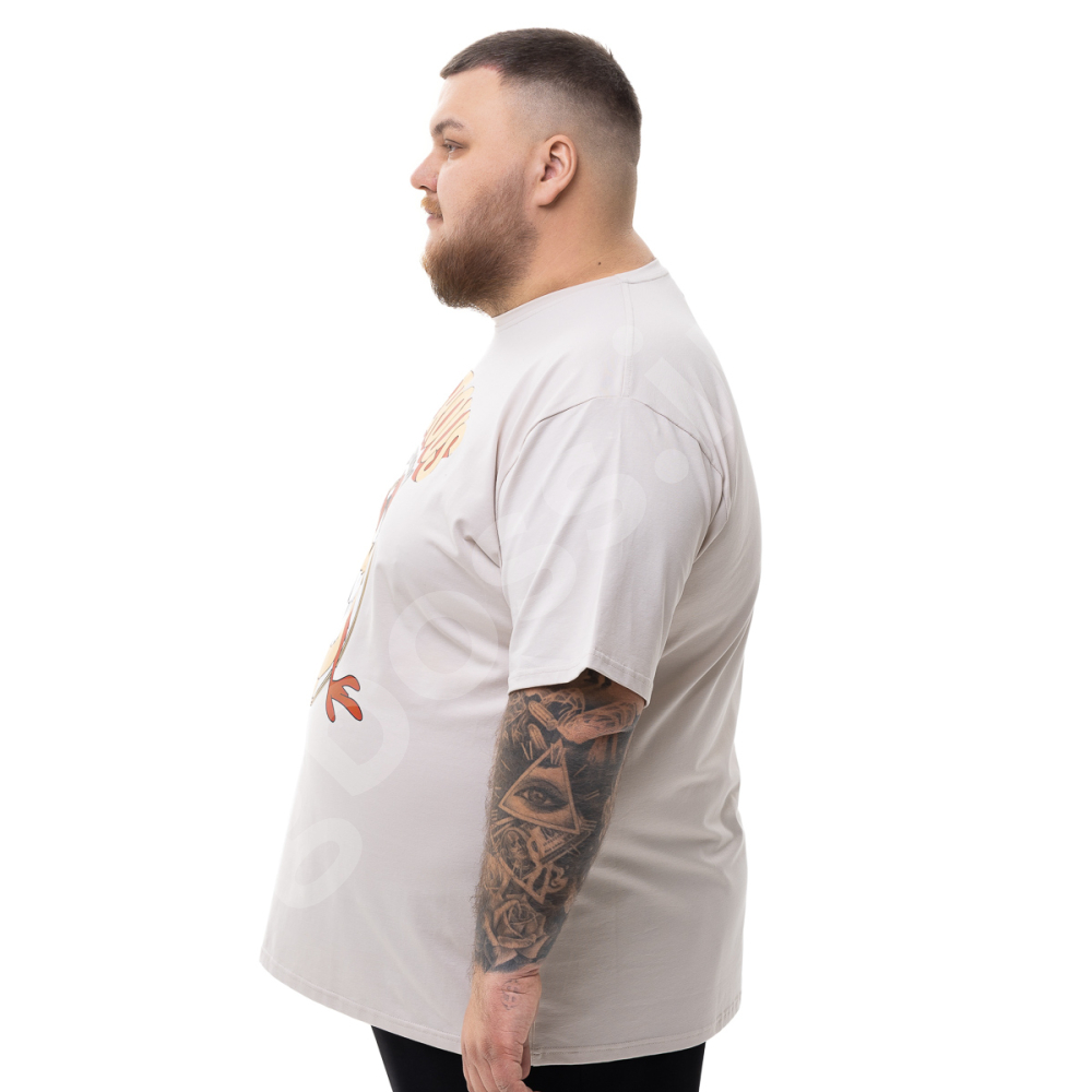 Мужская футболка большого размера Big Team. Выполнена из 95% хлопка и 5% эластана, цвет бежевый. Футболка хорошо тянется. Спереди нанесён принт.
