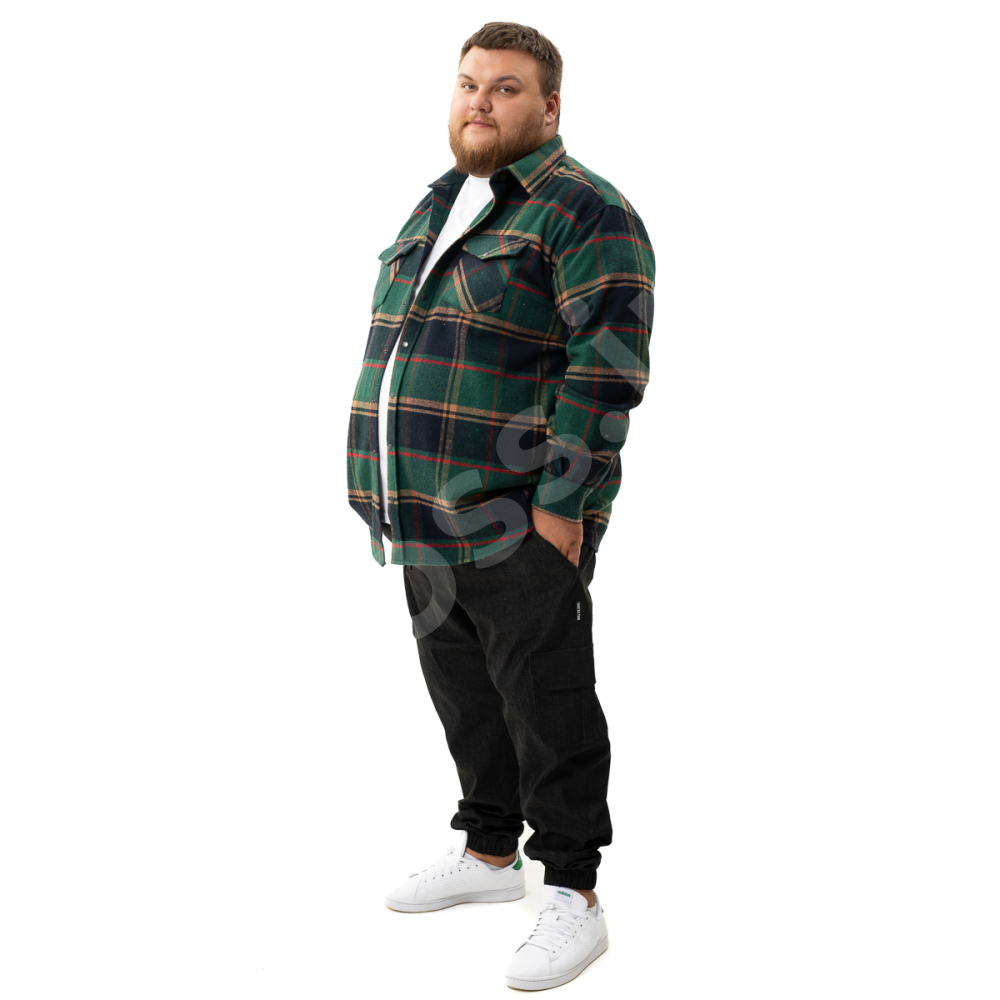 Описание Рубашка большого размера Big Team. Выполнена из 85% хлопка и 15% полиэстра. Тонкая фланель. Застёгивается на кнопках. Спереди 2 кармана. Джинсы карго на резинке большого размера Big Team. Выполнены из хлопка в чёрном цвете. Пояс на резинке и шнуровке. Спереди 2 кармана, также 2 кармана боковых на липучках. Сезон: весна - осень.