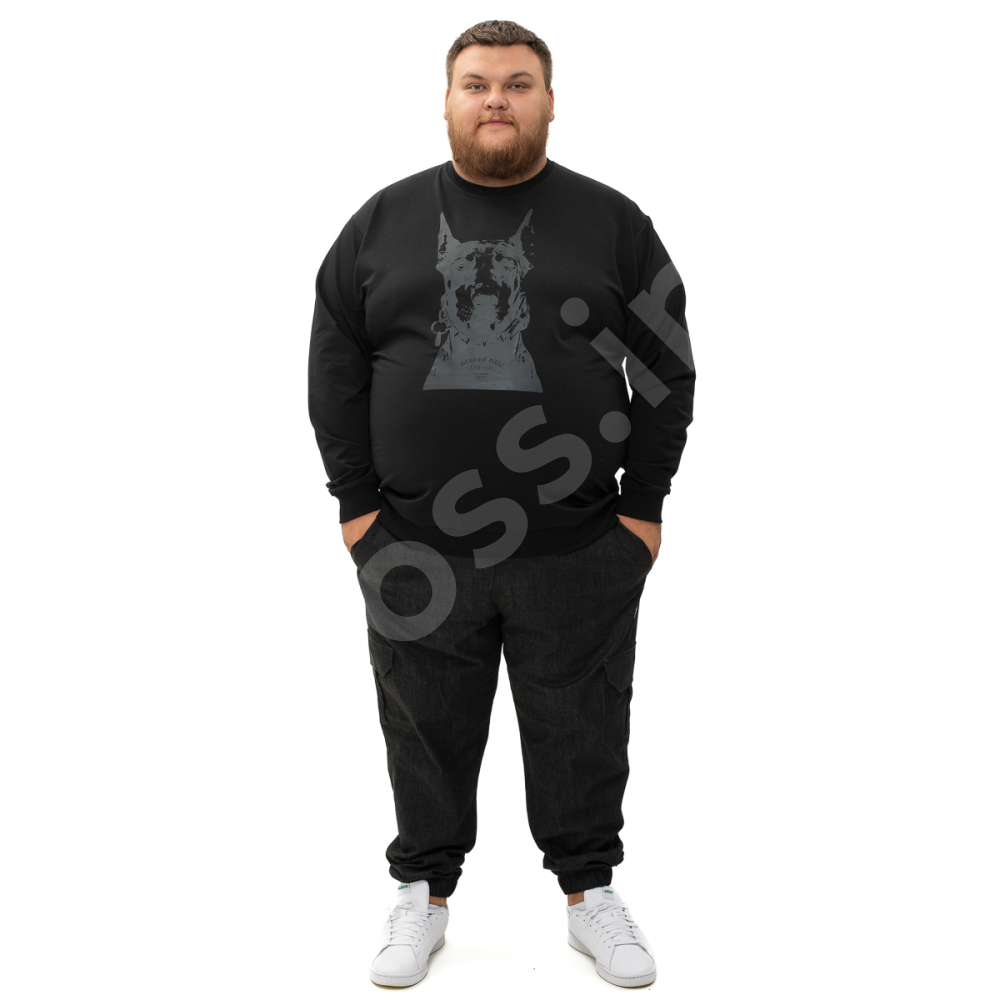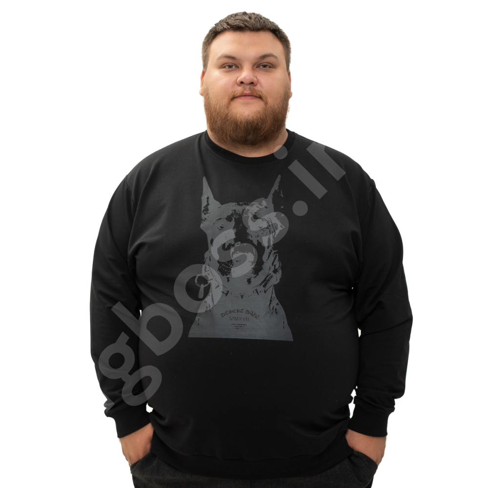 Описание Джемпер большого размера Big Team. Выполнен из 80% хлопка и 20% эластана (трикотаж 2-х нитка). Низ изделия и рукава на манжете. Чёрный цвет, на груди принт. Средней плотности. Производитель ткани - Турция, фабричный пошив - Украина.
