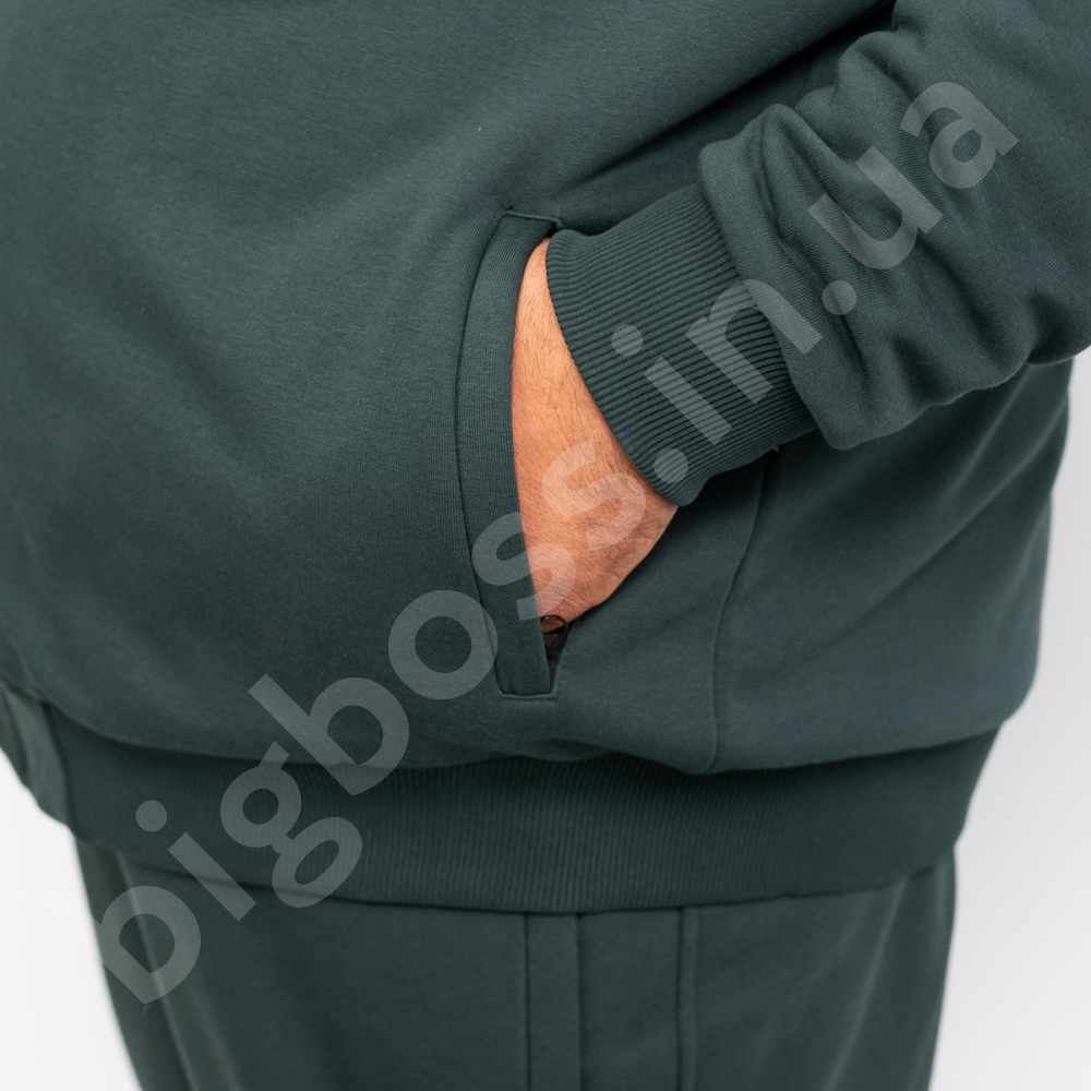 Описание Толстовка большого размера Big Team. Выполнена из Турецкого трикотажа зелёного цвета, спереди 2 кармана на молнии. Низ изделия и рукава на манжете. Изнаночная сторона ткани имеет специфическое петельное переплетение. Ткань средней плотности, очень мягкая и пиятная к телу.Состав ткани: 100% хлопок.