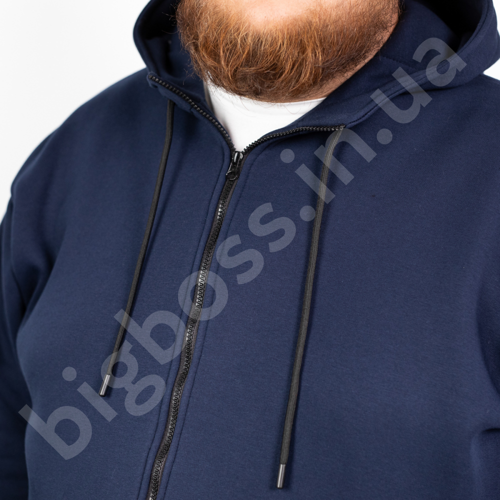Описание Толстовка тёплая большого размера Big Team. Выполнена из мягкого хлопкового трикотажа (байка с начёсом внутри), тёмно синий цвет. Спереди 2 кармана на молнии. Толстовка тёплая, с капюшоном.Состав: 80% хлопок, 20% лайкра.