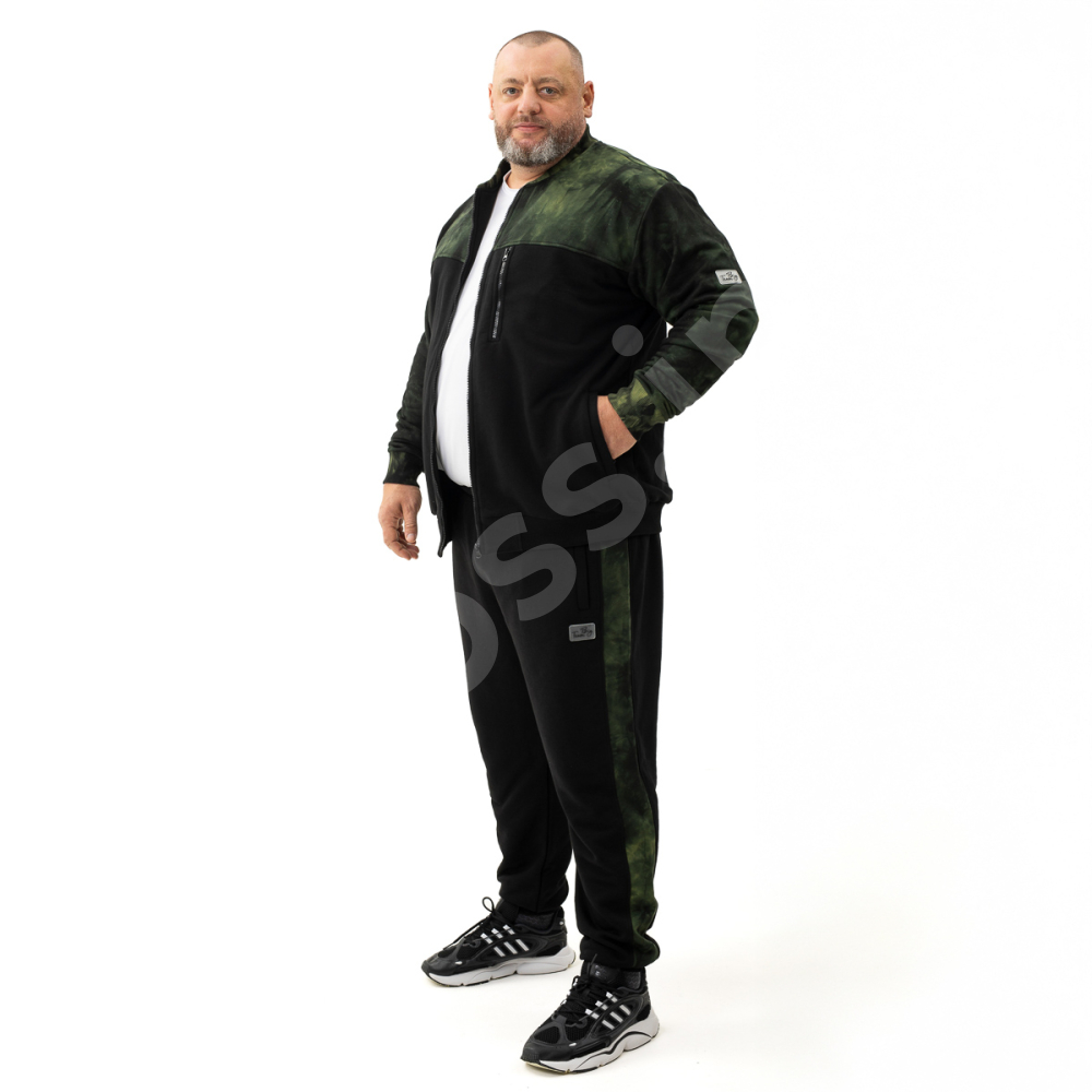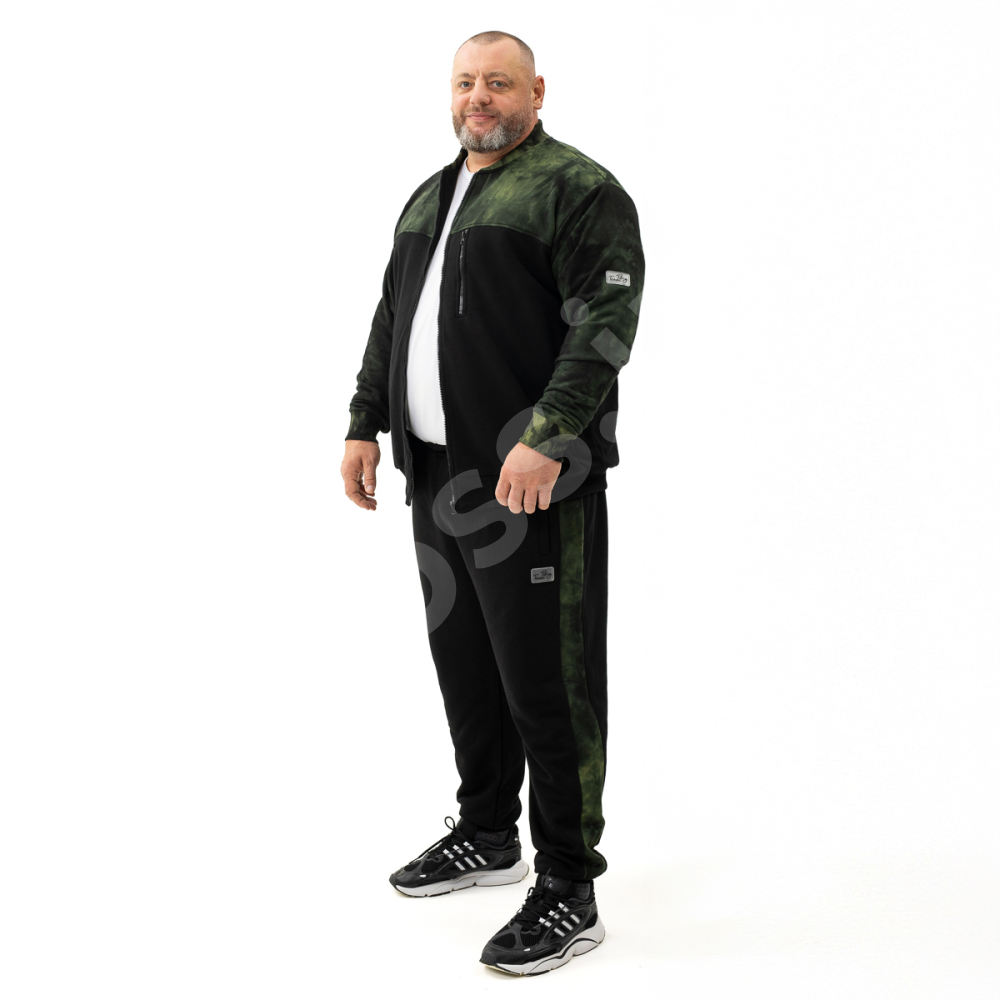 Описание Спортивный костюм большого размера Big Team. Турецкий трикотаж,выполнен из 80 %хлопка и 20 % эластана. Толстовка: чёрный цвет, совставками зелёного, снизу на манжете, 2 кармана на молнии. Штаны: поясна резинке и шнуровка, 2 кармана на молнии, чёрного цвета, со вставками.на манжетах. Ткань средней плотности, изнаночная сторона ткани имеетспецефическое петельное плетение. РАЗМЕРЫ МОЖНО РАСПАРОВЫВАТЬ!!!
