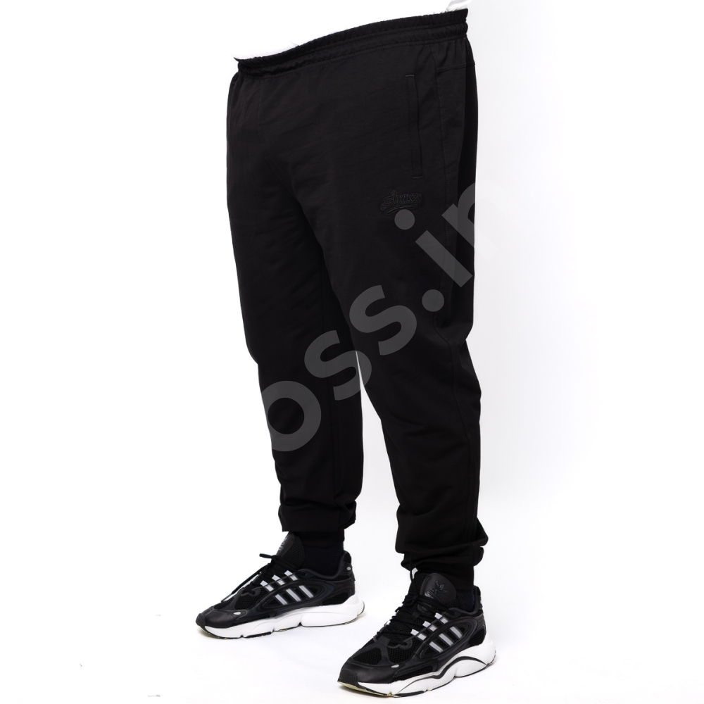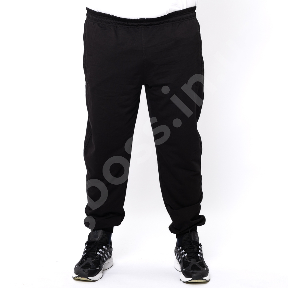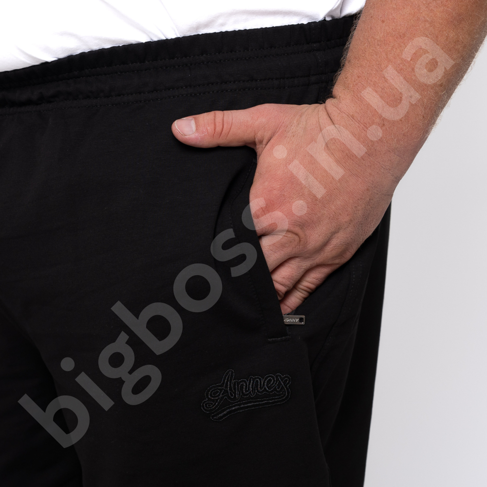Описание Спортивные штаны большого размера ANNEX. Выполнены из трикотажа чёрного цвета. Пояс на резинке со шнурком внутри. Спереди 2 кармана. Снизу на манжетах.