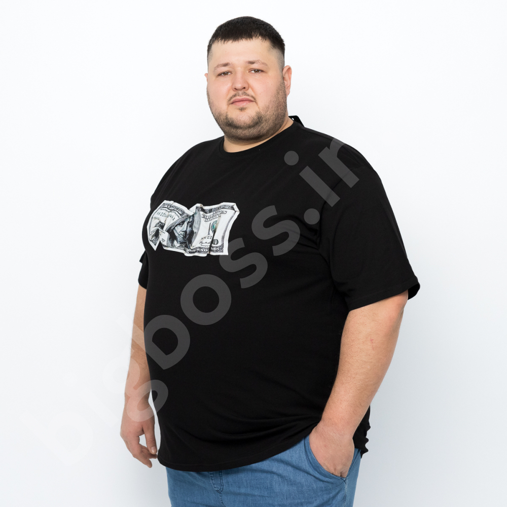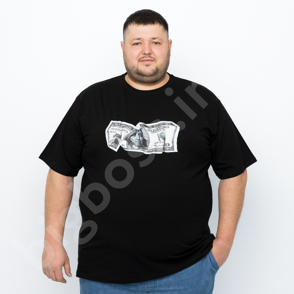 Чоловіча футболка великого розміру Big Team. Виконана з 95% бавовни та 5% еластану, чорного кольору. Футболка добре тягнеться. На грудях принт.