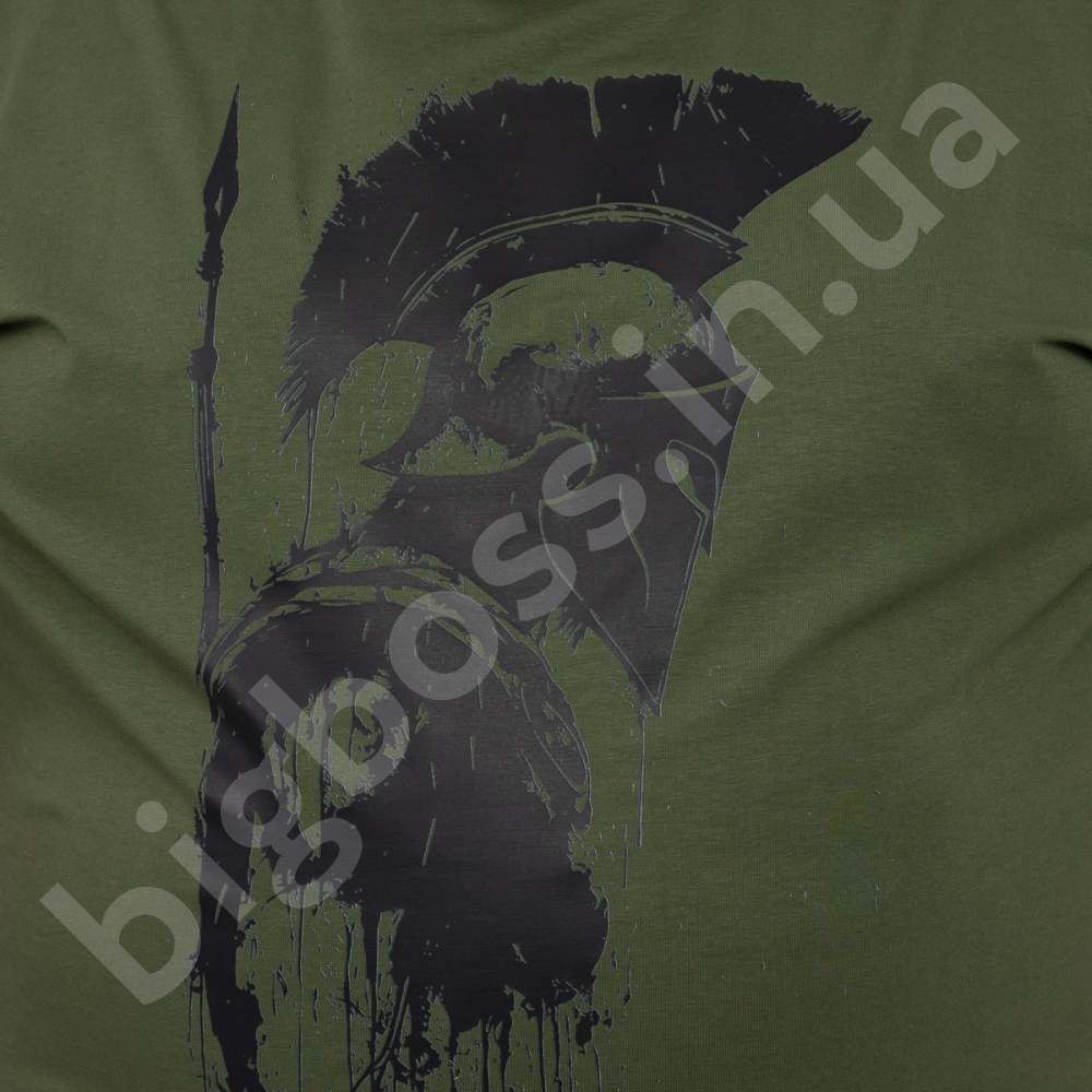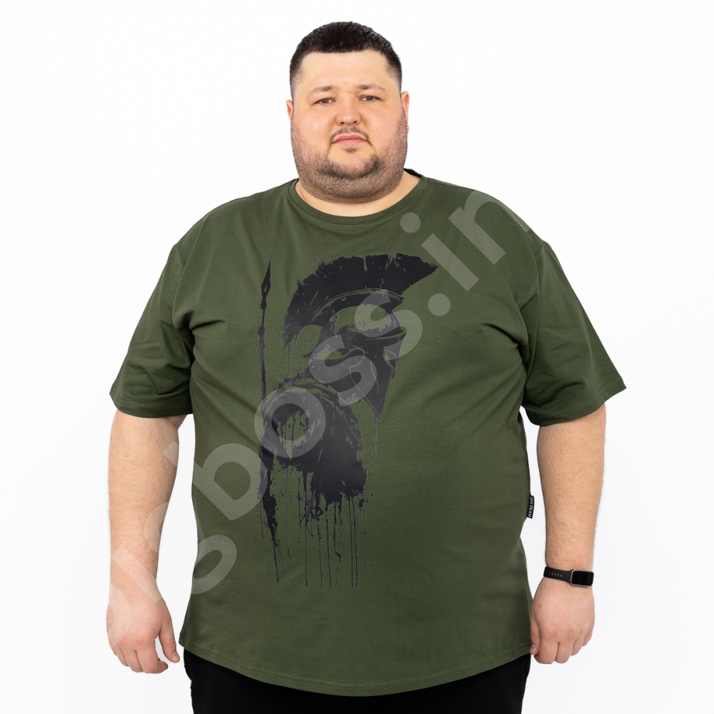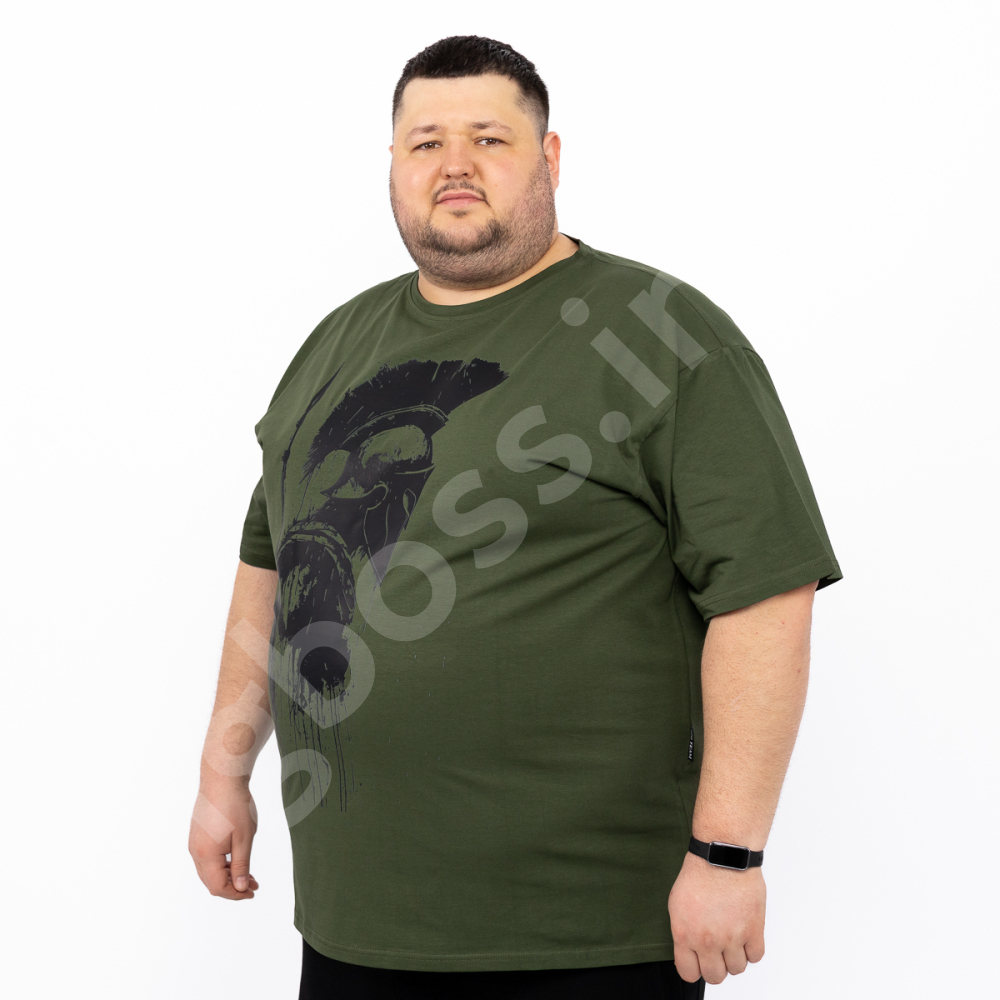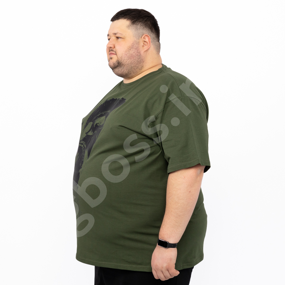 Опис Чоловіча футболка великого розміру Big Team. Виконана з 95% бавовни та 5% еластану, кольору хакі. Футболка добре тягнеться. Спереду нанесено принт.