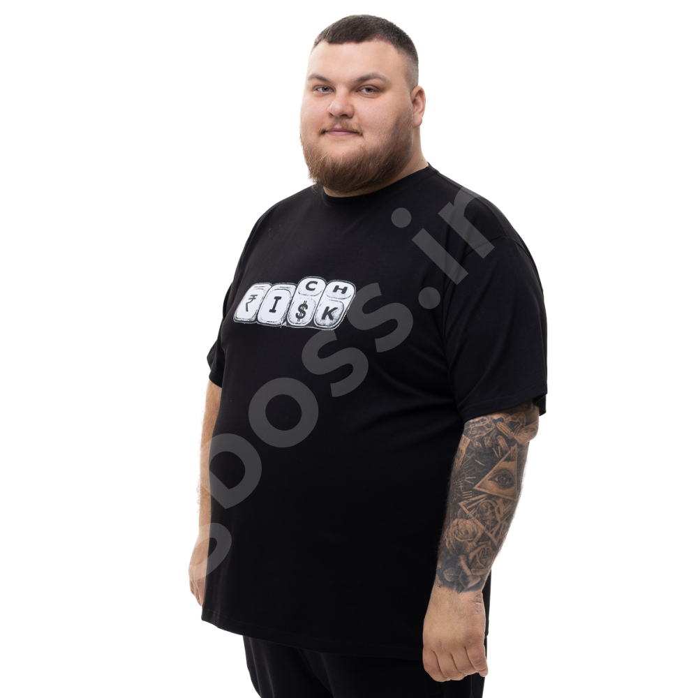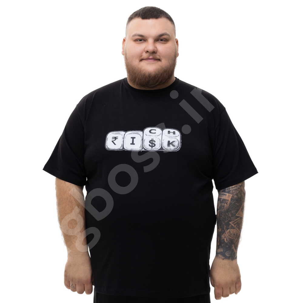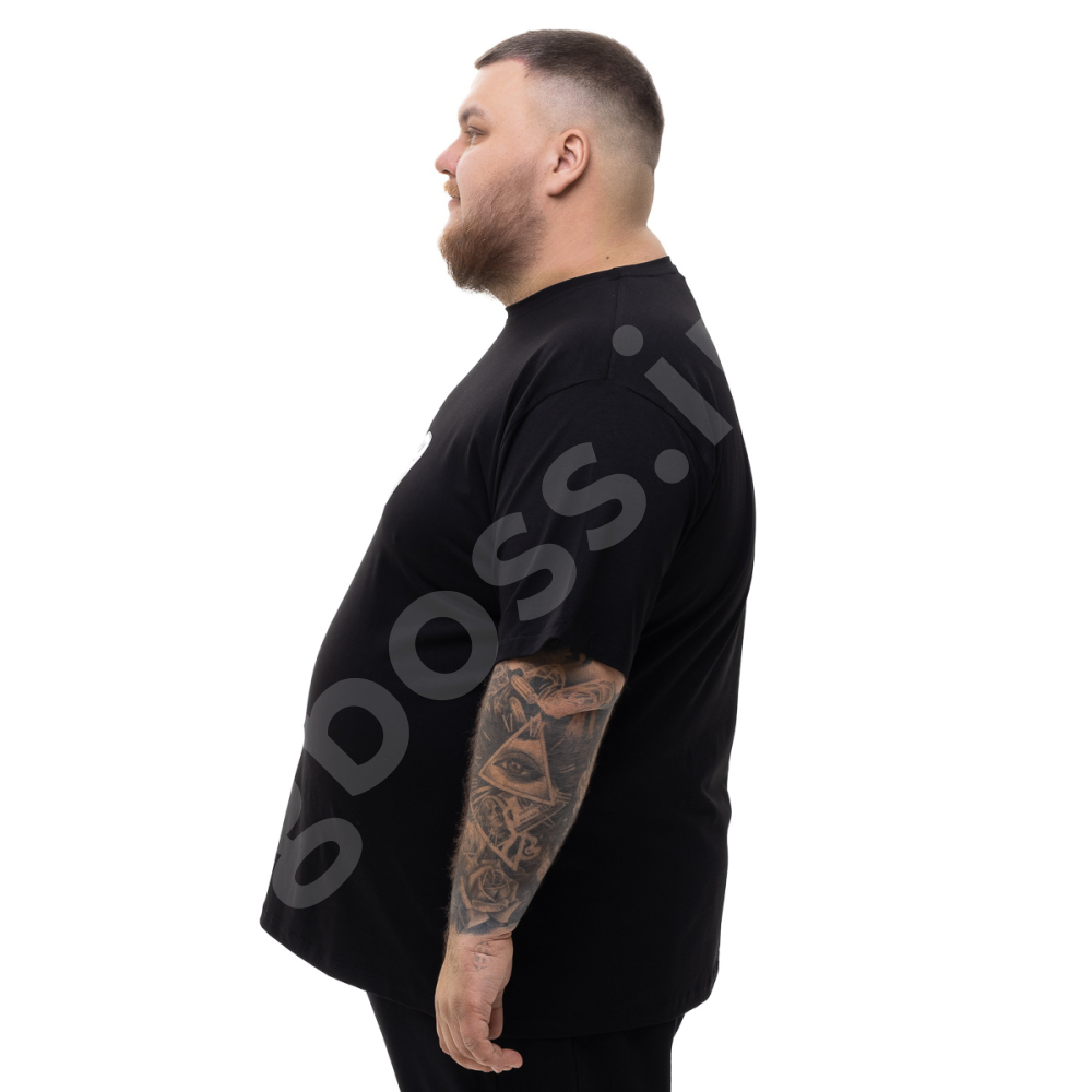 Чоловіча футболка великого розміру Big Team. Виконана з 95% бавовни та 5% еластану, колір чорний. Футболка добре тягнеться. Спереду нанесено принт.