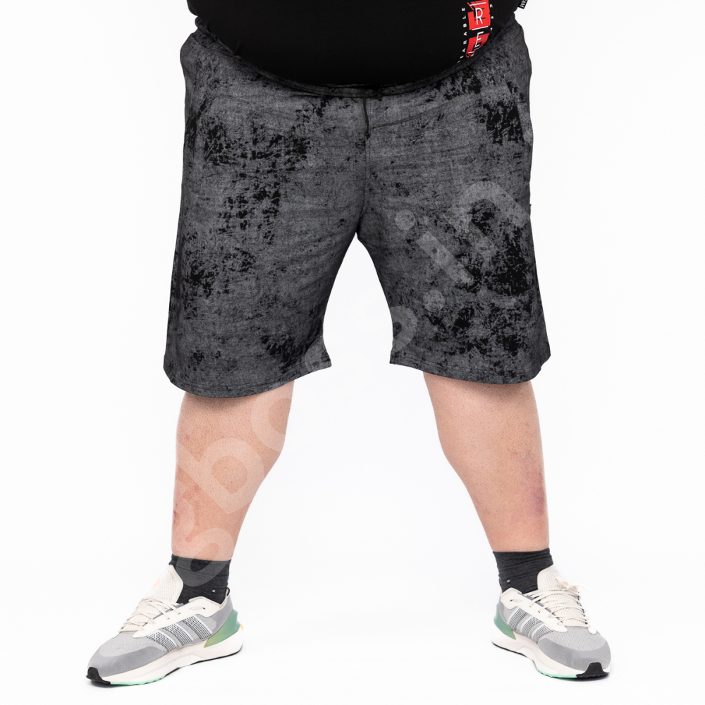 Опис Чоловічі шорти великого розміру. Виконані з м'якого трикотажу у яскравому забарвленні. Пояс на резинці зі шнурком, спереду 2 кишені один ззаду на замку. Склад тканини: 80% бавовна, 20% еластан. Модель вкорочена за довжиною.