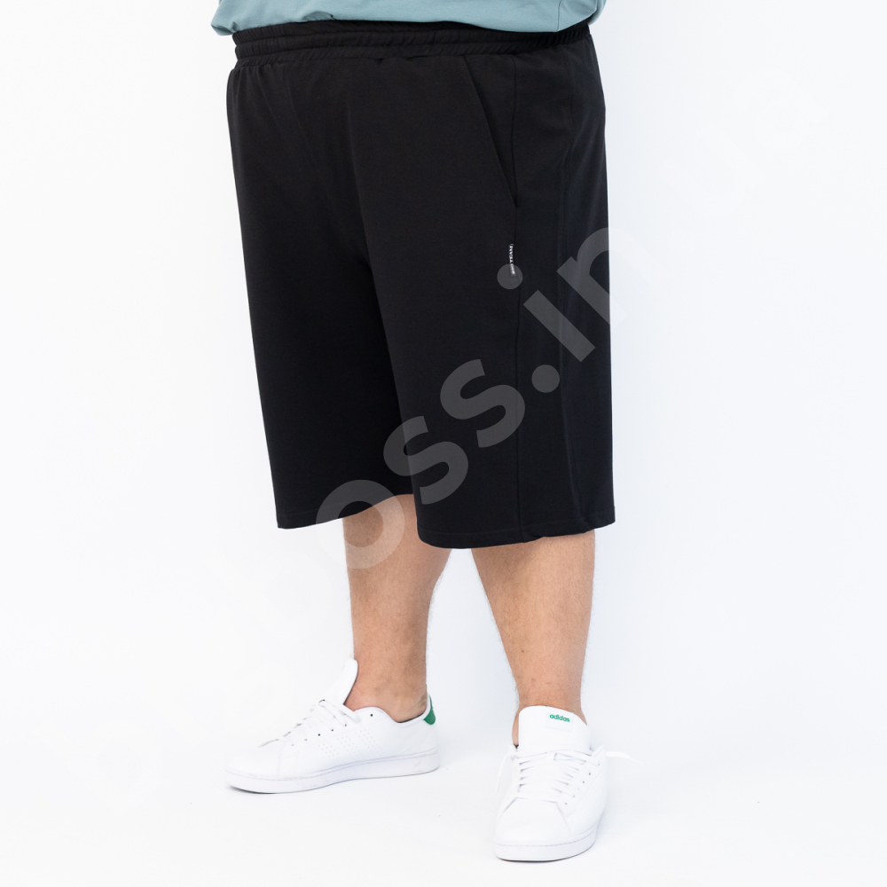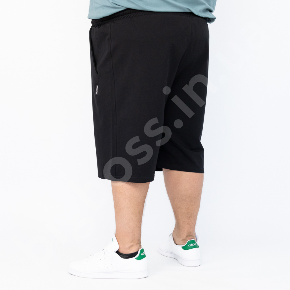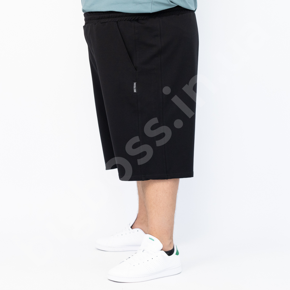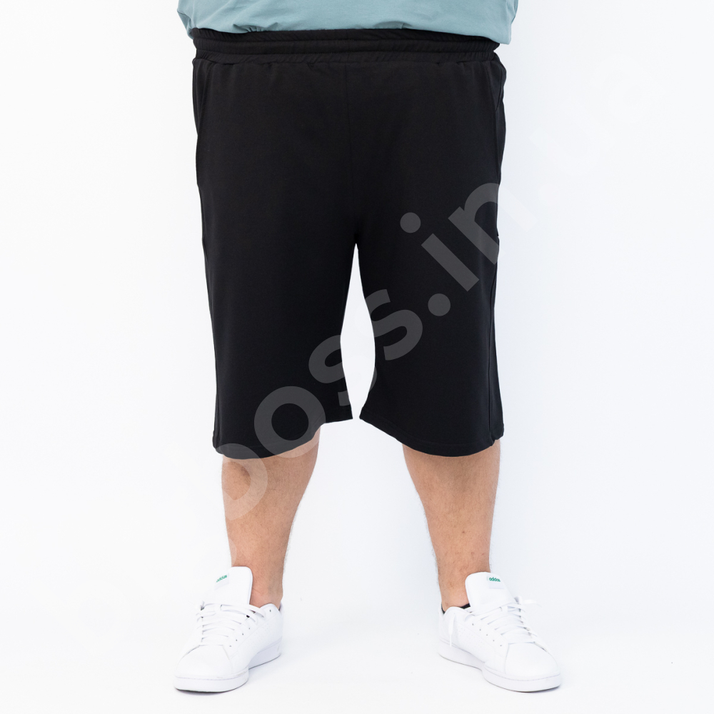 Опис Чоловічі шорти великого розміру. Виконані з м'якого трикотажу у чорному кольорі. Пояс на резинці зі шнурком, спереду 2 кишені. Склад тканини: 80% бавовна, 20% еластан.