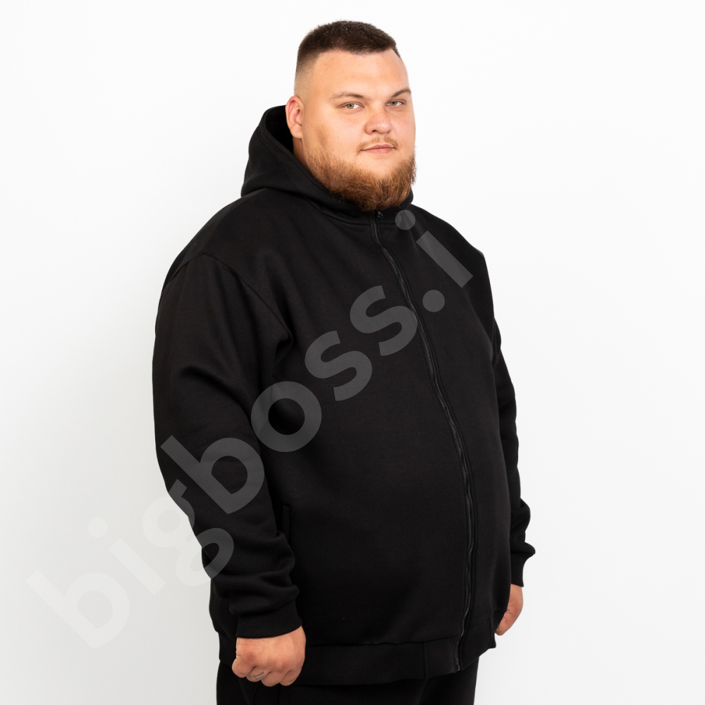 Опис Толстовка тепла великого розміру Big Team. Виконана з м'якого бавовняного трикотажу (байка з начесом усередині), чорний колір. Спереду 2 кишені на блискавці. Толстовка тепла, з капюшоном. Склад: 80% бавовна, 20% лайкра.