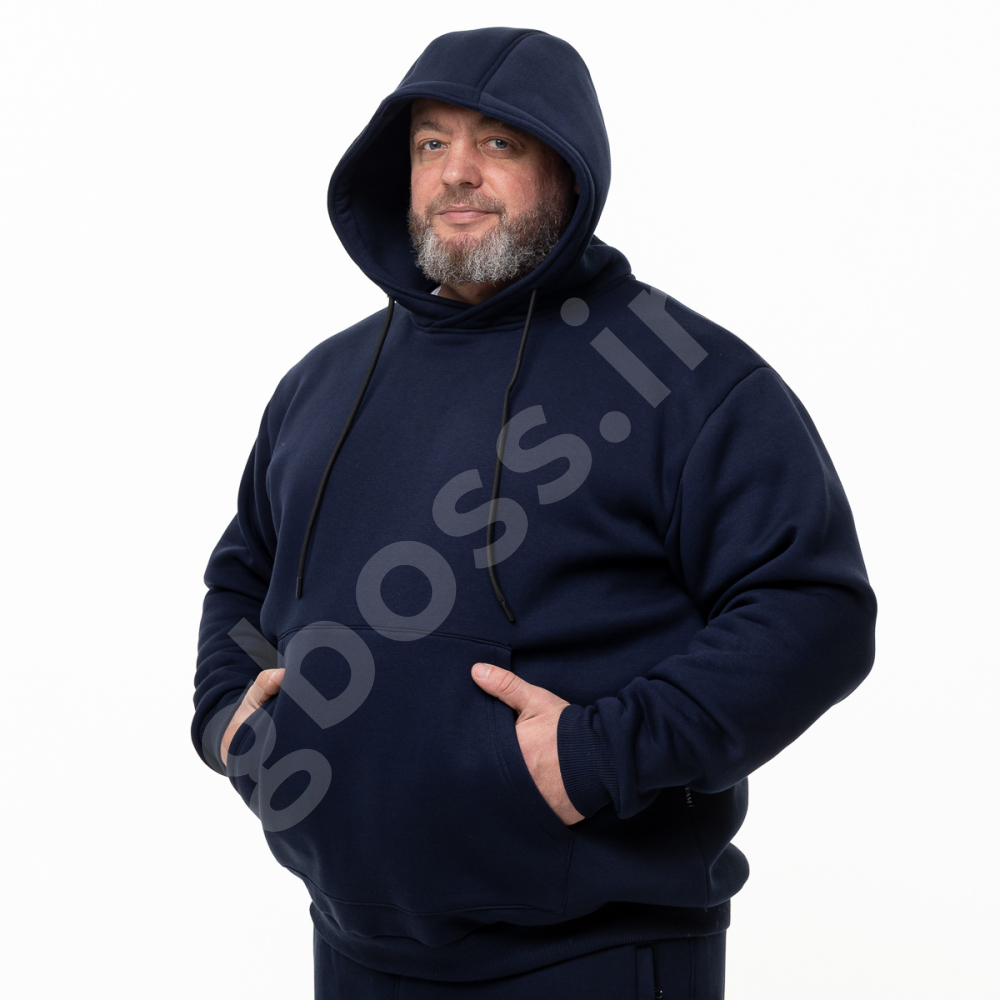 Опис Кенгуру великого розміру Big Team. Виконана з Турецького трикотажу у темно-синьому кольорі, спереду велика кишеня, капюшон.Низ виробу та рукава на манжеті. Тканина зсередини з начьосом. Дуже тепла, м'яка і приємна до тіла. Зимовий сезон.